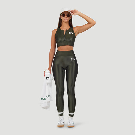 The Dolly Active Sports Leggings are a true signature style, crafted from premium Italian sports fabric with a subtle shine that channels an 80’s edge. Designed with a high-rise fit and wide waistband, they smooth, support and move with you. This season they return in a deep olive shade, adding a rich new dimension to a Dolly classic.